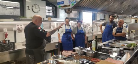 Участниците имаха и майсторски клас с шеф Хю Бутен – директор на Института по кулинарни изкуства към ВУМ, и шеф Станислав Кубарев, които също така разясниха процесите зад камерата при създаването на видео-презентациите и демонстрациите, и дадоха някои насоки за разработване на инструкции към курсистите, които ще бъдат включени във виртуално обучение по готварство.